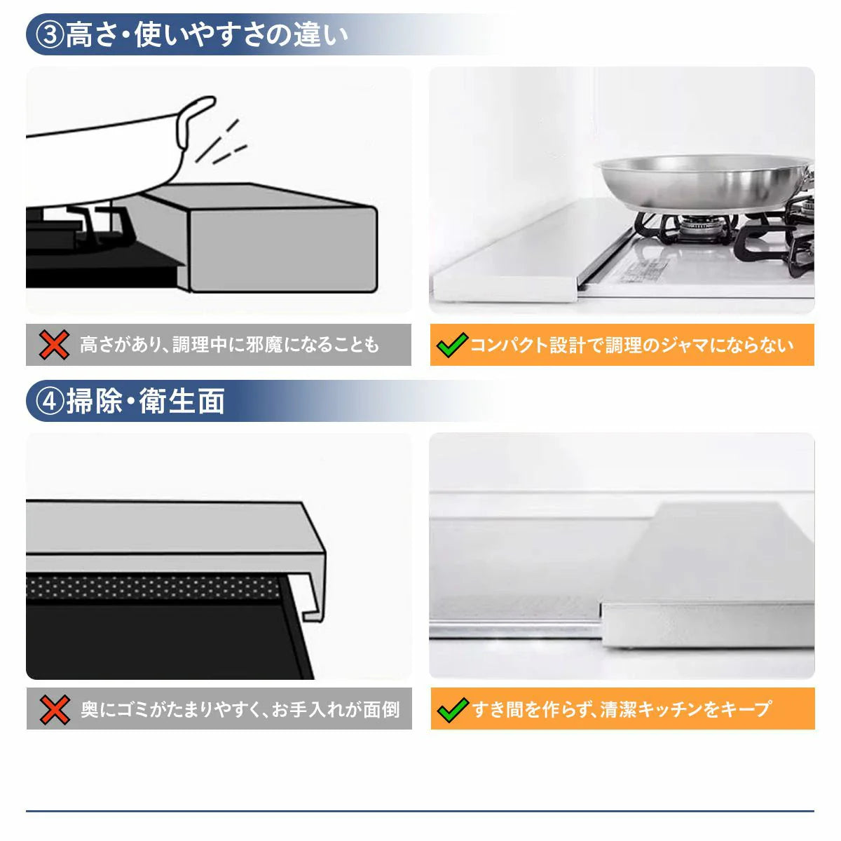 | サイズ | 幅 64cm / 高さ 2.5cm / 奥行 10cm ガスコンロ幅60cmに対応 |