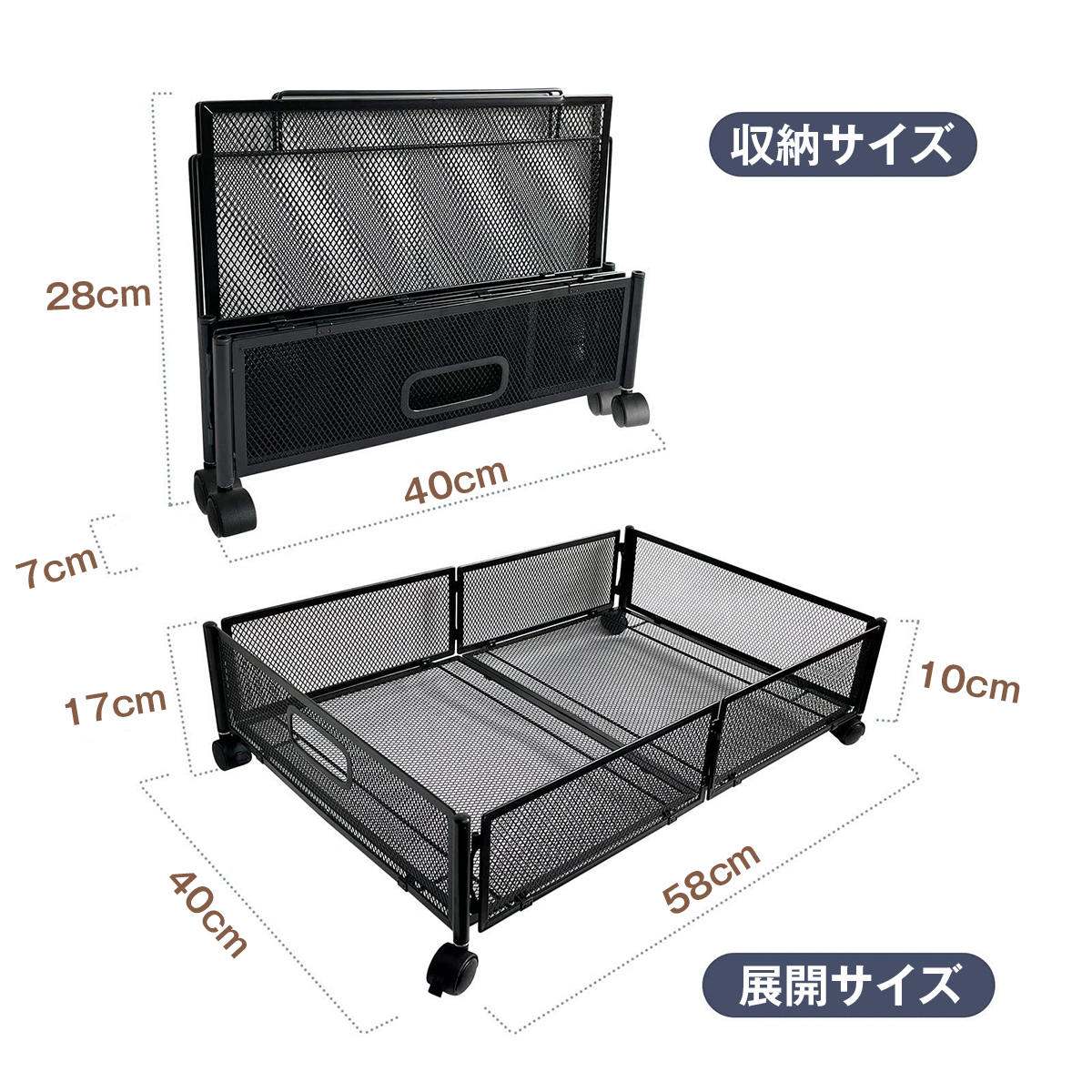 | サイズ | 幅40cm 奥行58cm 高さ17cm(キャスター含む) |