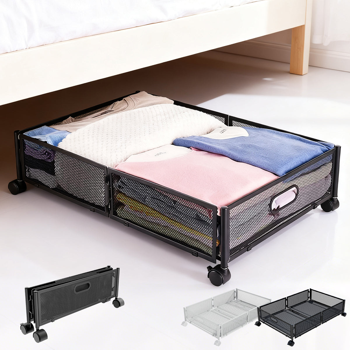 ベッド下収納 キャスター付き 収納ボックス 折りたたみ 収納ケース 薄型 収納ワゴン キャスター ベッド下収納ボックス ローラー付き 大容量 布団収納 薄型 衣類収納 スペース活用 隙間収納 整理ボックス 押入れ収納 ベッド下ワゴン浅型